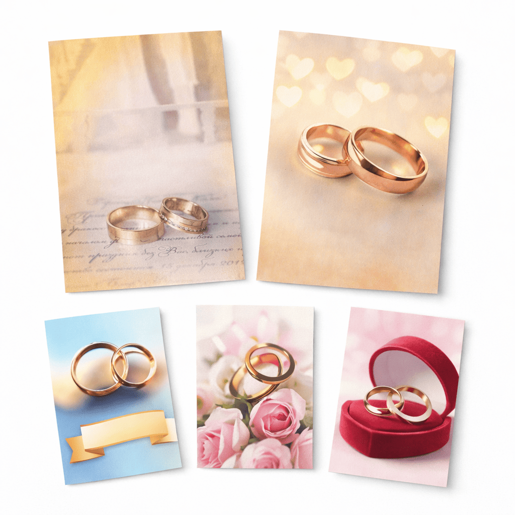 Το σχέδιο επιλέγεται τυχαία, όμως κάθε κάρτα είναι προσεγμένη και κατάλληλη για να εκφράσετε τις θερμότερες ευχές σας στο ζευγάρι.