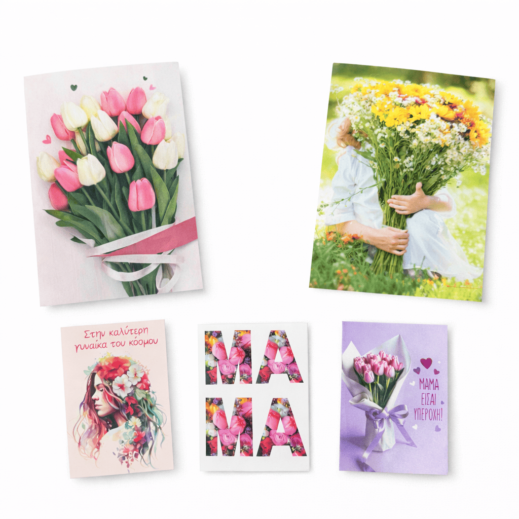 🌸 Ευχετήρια Κάρτα για τη Μαμά – Τυχαίο Σχέδιο με Φάκελο