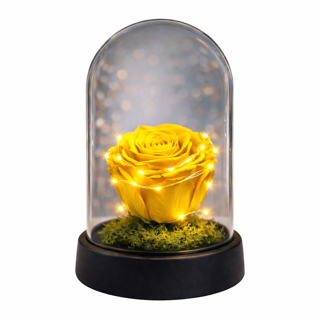 Χαρακτηριστικά: Διαστάσεις γυάλας Ύψος 13εκ. Διάμετρος 11εκ. Περιγραφή : Αληθινό αποχυμωμένο τριαντάφυλλο κίτρινο με διάρκεια ζωής από 3 έως 5 χρόνια. Οδηγίες συντήρησης : Να είναι σε ένα φωτεινό σημείο μέσα στον χώρο, αλλά να μην το χτυπάει απευθείας ο ήλιος. ΔΕ ΧΡΕΙΑΖΕΤΑΙ πότισμα καθώς είναι ειδικά επεξεργασμένο να διαρκεί χρόνια