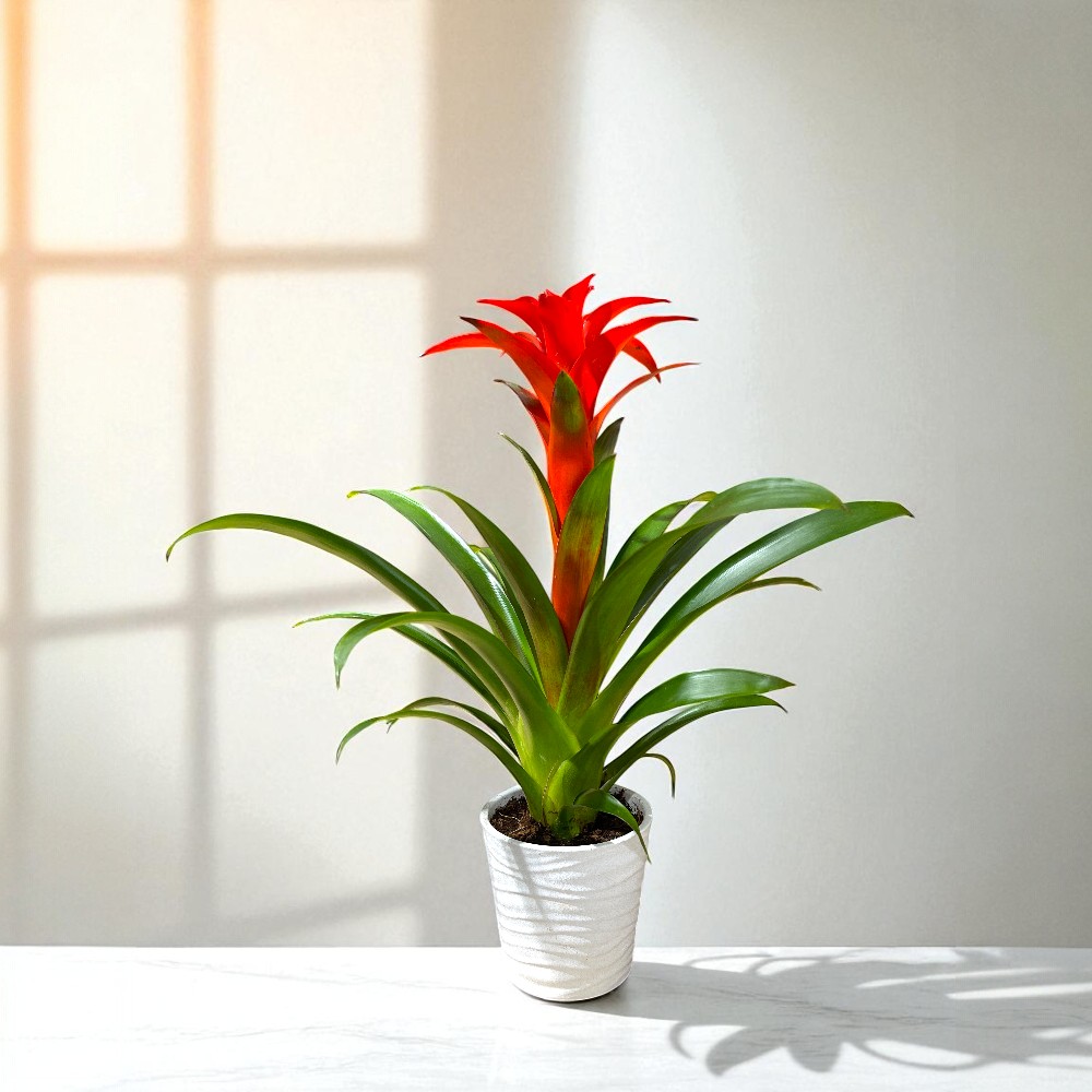 Η Γκουσμάνια είναι μια ξεχωριστή πρόταση για όσους αγαπούν τα φυτά με χαρακτήρα. Με τα εντυπωσιακά της χρώματα – κόκκινο, κίτρινο ή ροζ – και το κομψό κασπώ που τη συνοδεύει, μεταμορφώνει κάθε χώρο με μια μόνο ματιά. Είναι μεσαίου μεγέθους και μπορείτε να την τοποθετήσετε σε παντού.