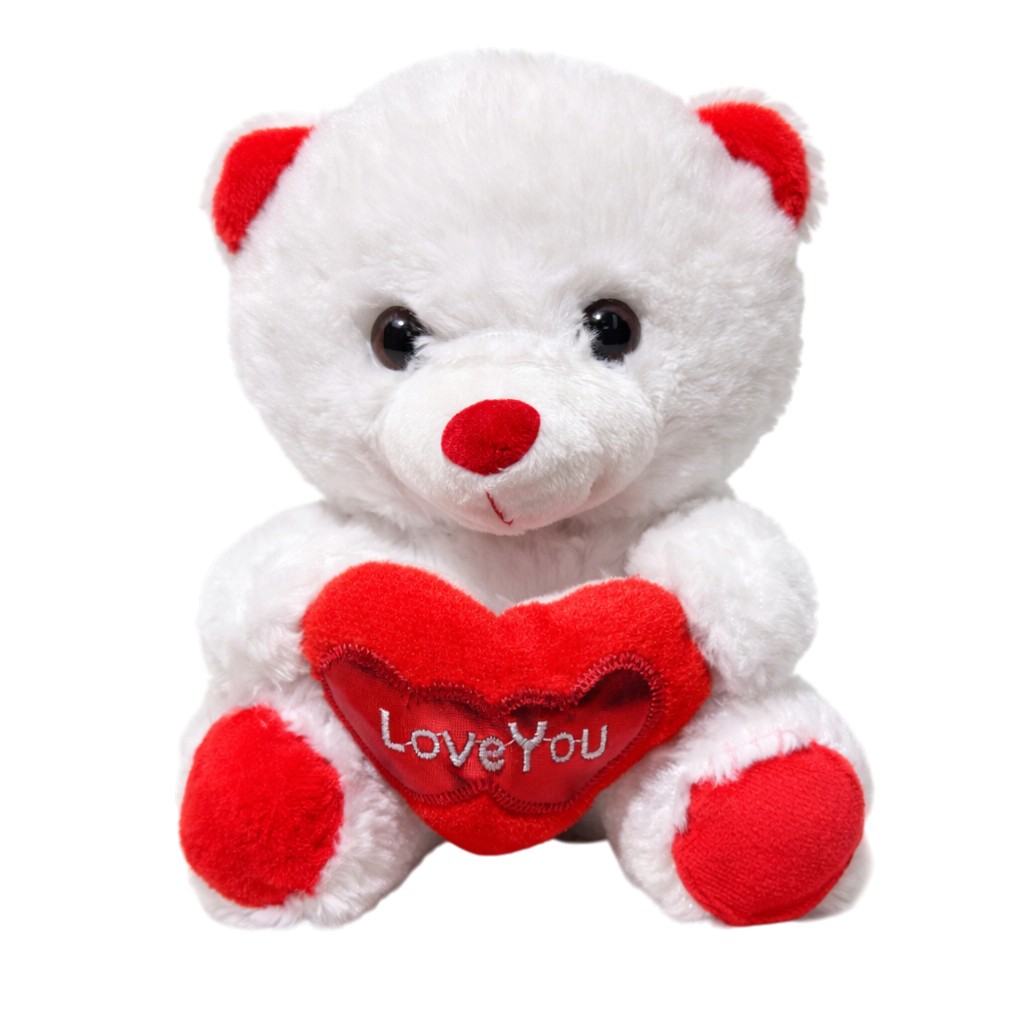 Γλυκό λευκό λούτρινο αρκουδάκι που κρατά κόκκινη καρδιά με μήνυμα “Love You”. Μια τρυφερή επιλογή δώρου για να εκφράσετε αγάπη και συναίσθημα, ιδανικό για ρομαντικές περιστάσεις και ξεχωριστές στιγμές.