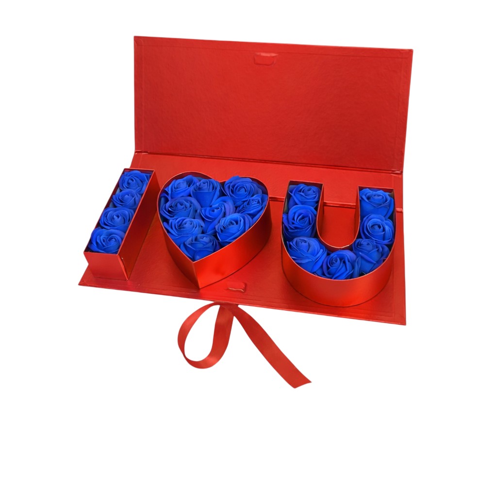 Πολυτελής κασετίνα I Love You με μπλε Soap Roses